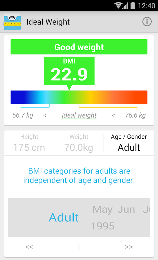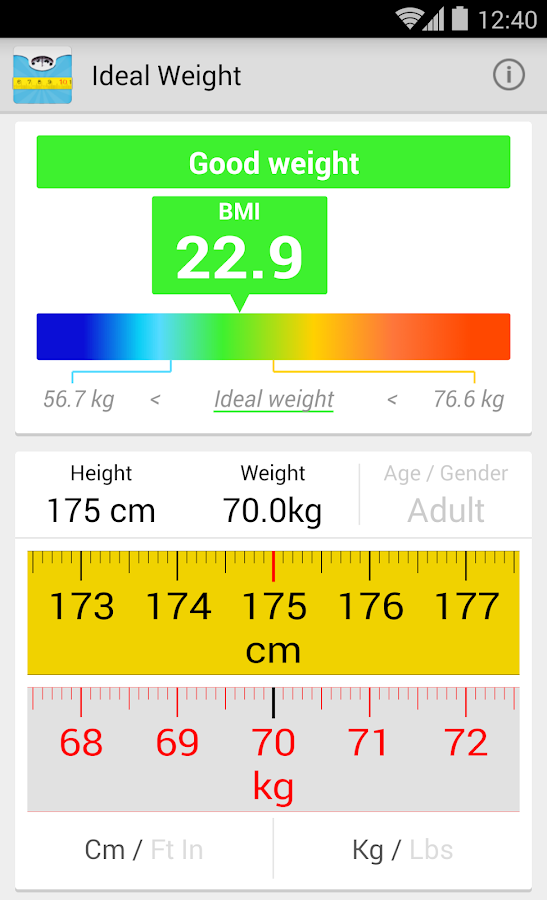 measure tapes to enter your weight and height and get the BMI value and also